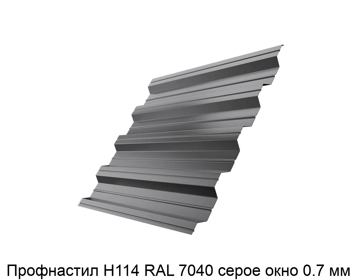 Профнастил Н114 RAL 7040 (серое окно) — это универсальный строительный материал, который изготавливается из оцинкованной стали с полимерным покрытием. Толщина листа составляет 0,7 мм.