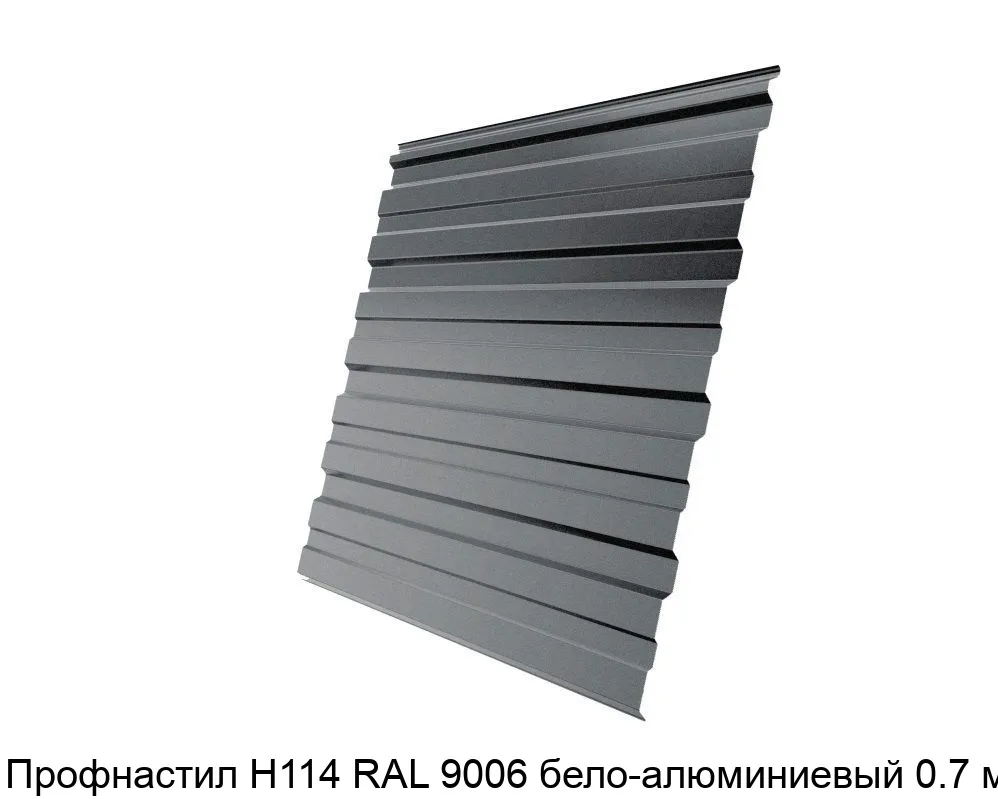 Купить профнастил Н114 RAL 9006 бело-алюминиевый 0.7 мм в Москве вы можете в компании Сортмет. Для этого оформите заказ на сайте или по телефону 8 (495) 123-30-40. У нас постоянно в наличии огромный выбор металлопроката, адекватные цены и оперативная доставка.