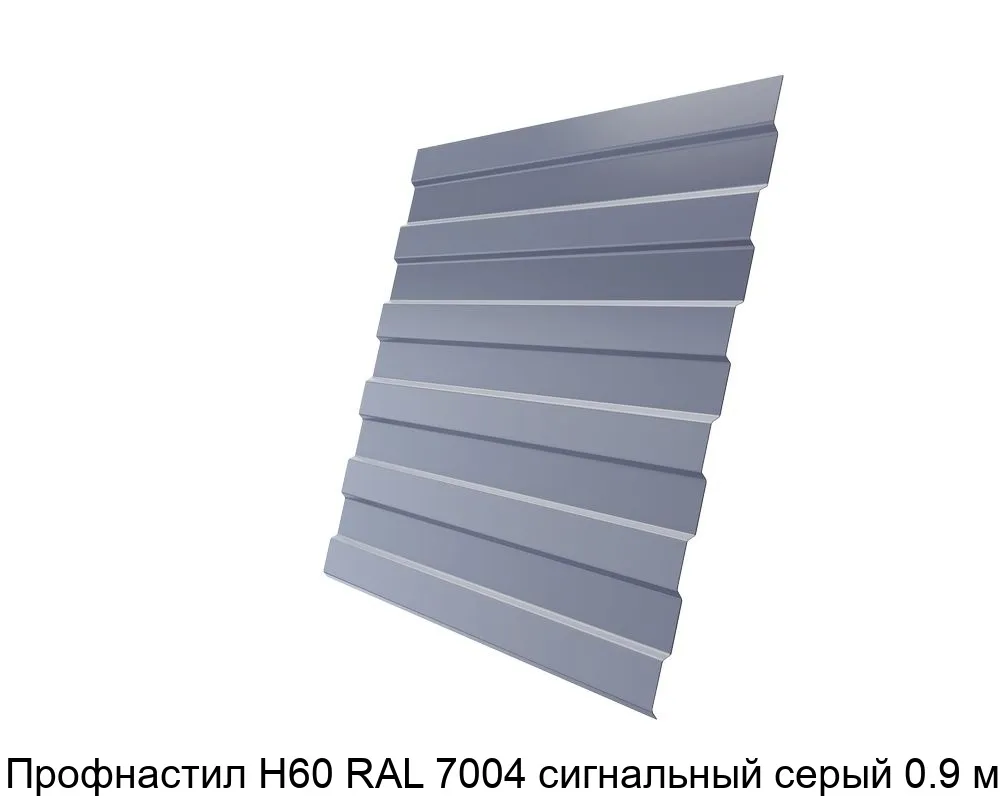 Профнастил Н60 RAL 7004 изготавливается из оцинкованной стали толщиной 0,9 мм. Защитный слой цинка и полимерное покрытие придают материалу прочность и устойчивость к коррозии.