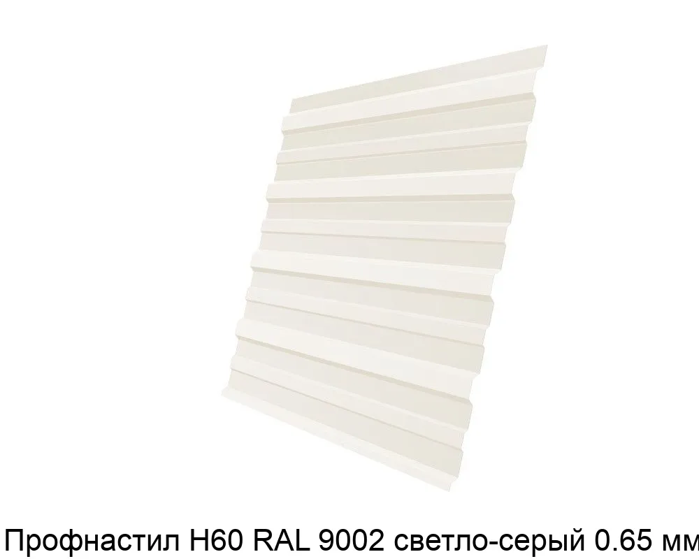Купить профнастил Н60 RAL 9002 светло-серый 0.65 мм в Москве вы можете в компании Сортмет. Для этого оформите заказ на сайте или по телефону 8 (495) 123-30-40. У нас на складе постоянно в наличии большой ассортимент металлопроката, доступные цены и оперативная доставка.