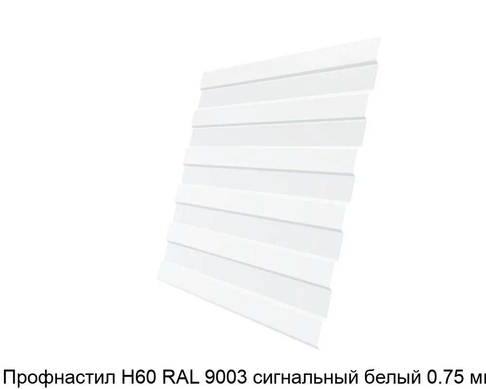 Купить профнастил Н60 RAL 9003 сигнальный белый 0.75 мм в Москве вы можете в компании Сортмет. Для этого оформите заказ на сайте или по телефону 8 (495) 123-30-40. У нас на складе всегда в наличии огромный ассортимент металлопроката, лучшие цены и быстрая доставка.