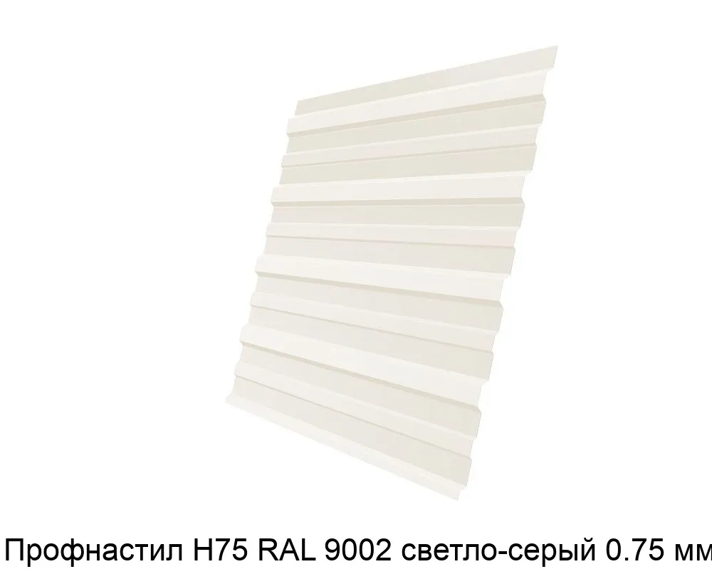 Купить профнастил Н75 RAL 9002 светло-серый 0.75 мм в Москве вы можете в компании Сортмет. Для этого оформите заказ на сайте или по телефону 8 (495) 123-30-40. У нас на складе постоянно в наличии широкий ассортимент металлопроката, лучшие цены и быстрая доставка.