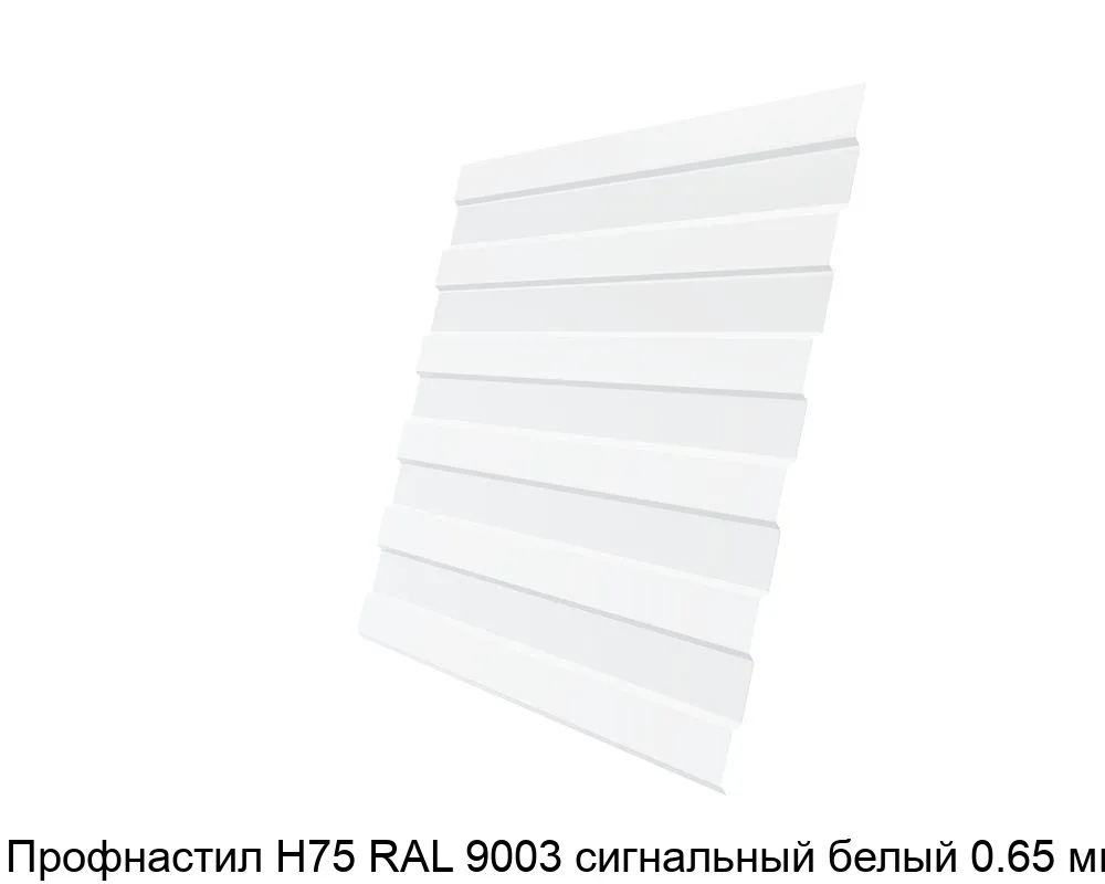 Купить профнастил Н75 RAL 9003 сигнальный белый 0.65 мм в Москве вы можете в компании Сортмет. Для этого оформите заказ на сайте или по телефону 8 (495) 123-30-40. У нас на складе всегда в наличии огромный ассортимент металлопроката, лучшие цены и быстрая доставка.