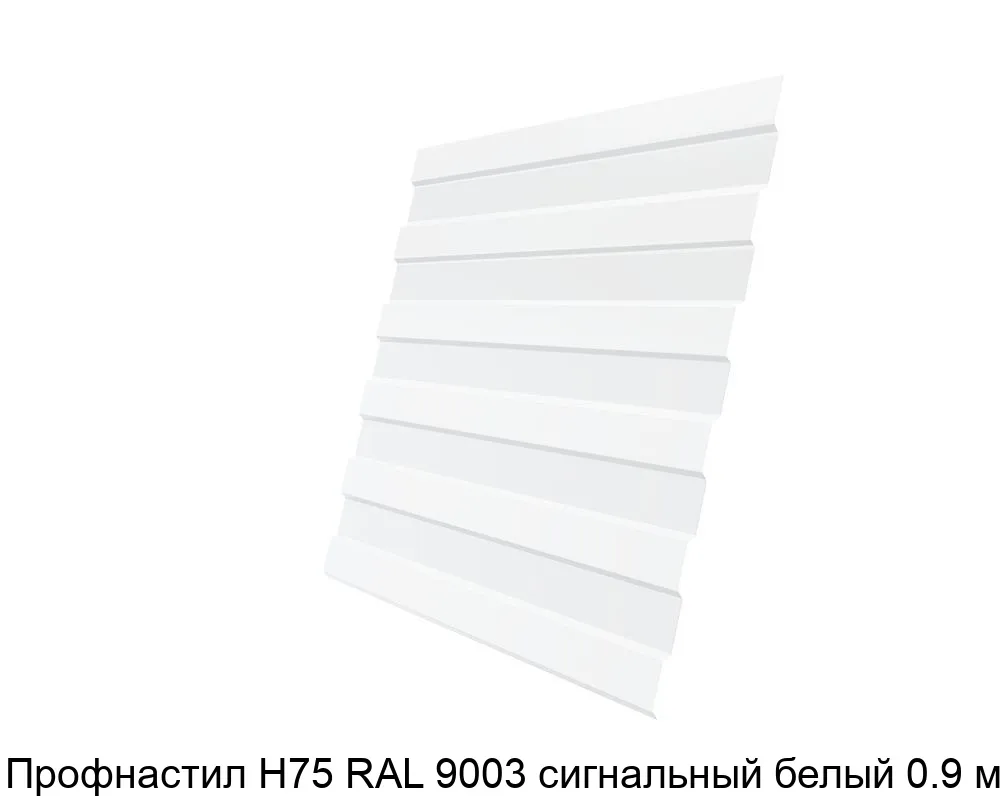 Купить профнастил Н75 RAL 9003 сигнальный белый 0.9 мм в Москве вы можете в компании Сортмет. Для этого оформите заказ на сайте или по телефону 8 (495) 123-30-40. На нашем складе всегда в наличии большой выбор металлопроката, адекватные цены и быстрая доставка.