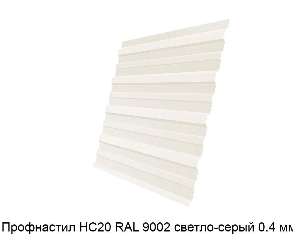 Купить профнастил НС20 RAL 9002 светло-серый 0.4 мм в Москве вы можете в компании Сортмет. Для этого оформите заказ на сайте или по телефону 8 (495) 123-30-40. На нашем складе постоянно в наличии большой выбор металлопроката, лучшие цены и своевременная доставка.