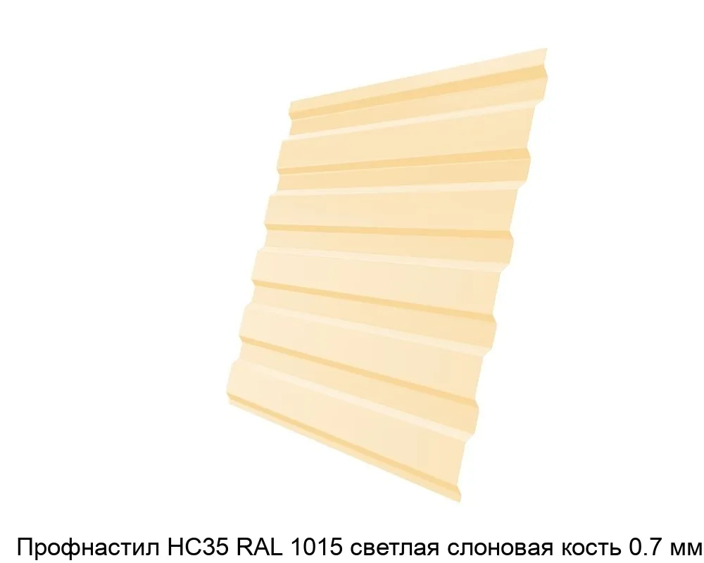 Профнастил НС35 RAL 1015 светлая слоновая кость 0.7 мм изготавливается из оцинкованной стали, которая покрывается защитным полимерным слоем. Это обеспечивает материалу прочность, устойчивость к коррозии и долговечность.