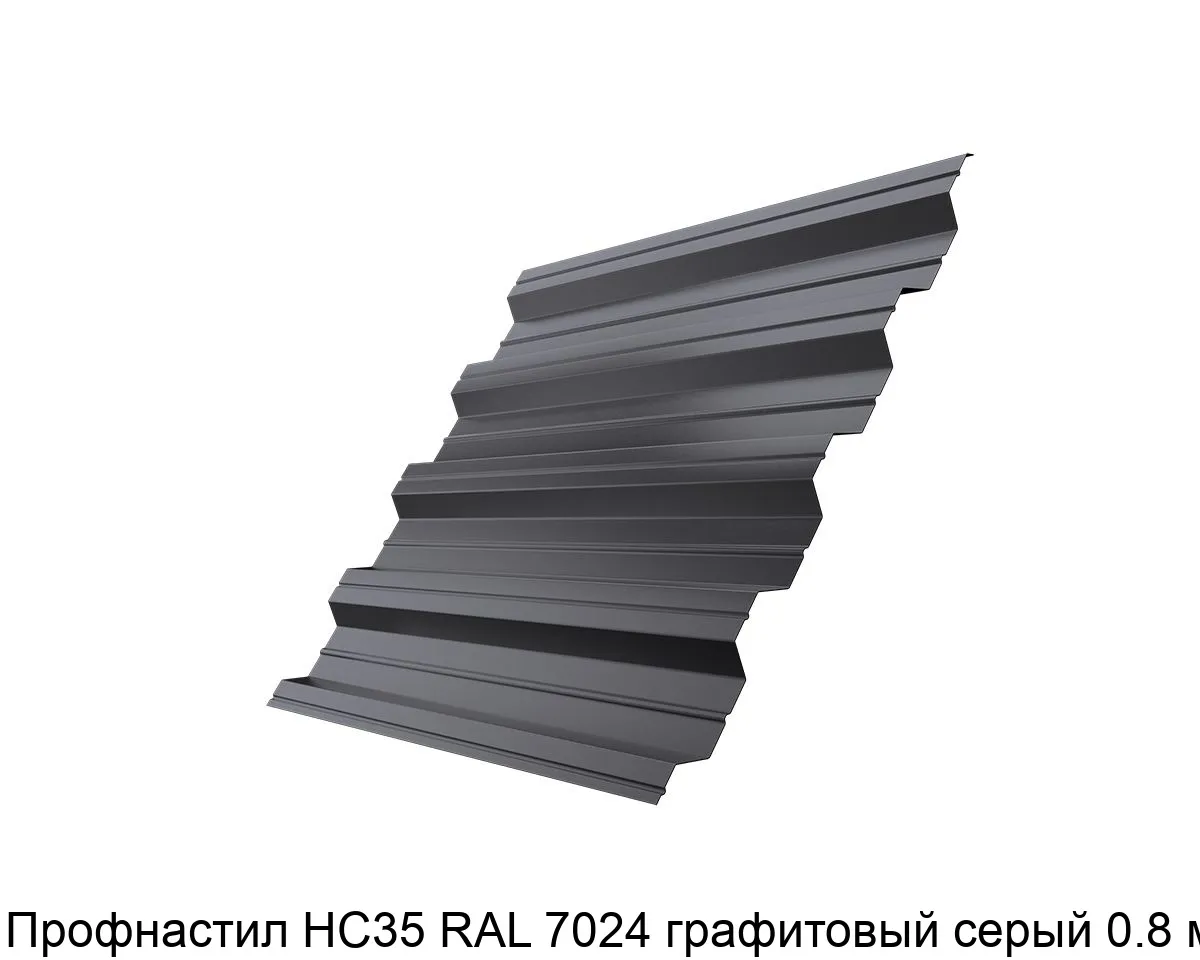 Купить профнастил НС35 RAL 7024 графитовый серый 0.8 мм в Москве вы можете в компании Сортмет. Для этого оформите заказ на сайте или по телефону 8 (495) 123-30-40. У нас на складе всегда в наличии широкий выбор металлопроката, доступные цены и своевременная доставка.