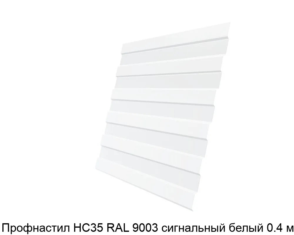Профнастил НС35 сигнальный белый 0.4 мм изготавливается из оцинкованной стали, которая покрывается полимером цвета RAL 9003 — это белый цвет.