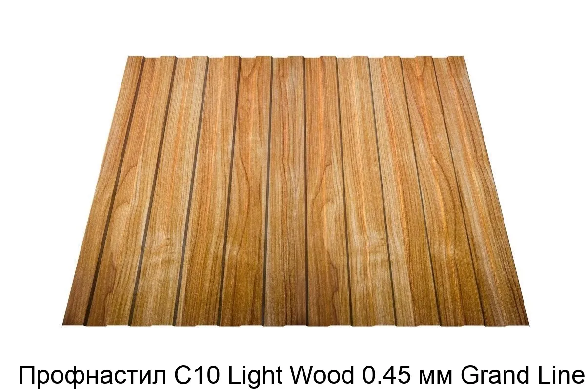 Купить профнастил С10 Light Wood 0.45 мм Grand Line в Москве вы можете в компании Сортмет. Для этого оформите заказ на сайте или по телефону 8 (495) 123-30-40. У нас постоянно в наличии широкий ассортимент металлопроката, адекватные цены и своевременная доставка.