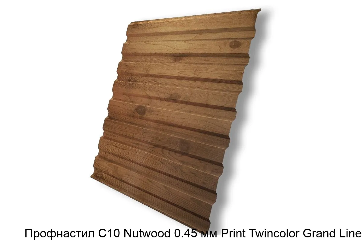 Купить профнастил С10 Nutwood 0.45 мм Print Twincolor Grand Line в Москве вы можете в компании Сортмет. Для этого оформите заказ на сайте или по телефону 8 (495) 123-30-40. На нашем складе всегда в наличии большой ассортимент металлопроката, лучшие цены и быстрая доставка.