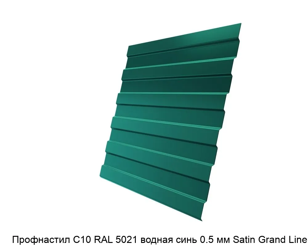 Купить профнастил С10 RAL 5021 водный синий 0.5 мм Satin Grand Line в Москве вы можете в компании Сортмет. Для этого оформите заказ на сайте или по телефону 8 (495) 123-30-40. У нас всегда в наличии огромный ассортимент металлопроката, доступные цены и своевременная доставка.