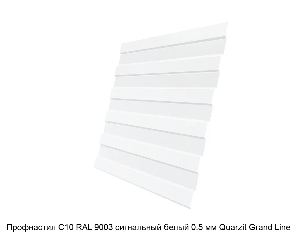 Купить профнастил С10 RAL 9003 сигнальный белый 0.5 мм Quarzit Grand Line в Москве вы можете в компании Сортмет. Для этого оформите заказ на сайте или по телефону 8 (495) 123-30-40. У нас на складе всегда в наличии большой ассортимент металлопроката, лучшие цены и оперативная доставка.