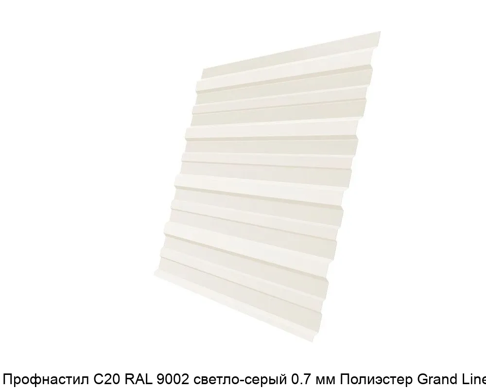 Купить профнастил С20 RAL 9002 светло-серый 0.7 мм Полиэстер Grand Line в Москве вы можете в компании Сортмет. Для этого оформите заказ на сайте или по телефону 8 (495) 123-30-40. У нас на складе всегда в наличии большой ассортимент металлопроката, доступные цены и своевременная доставка.