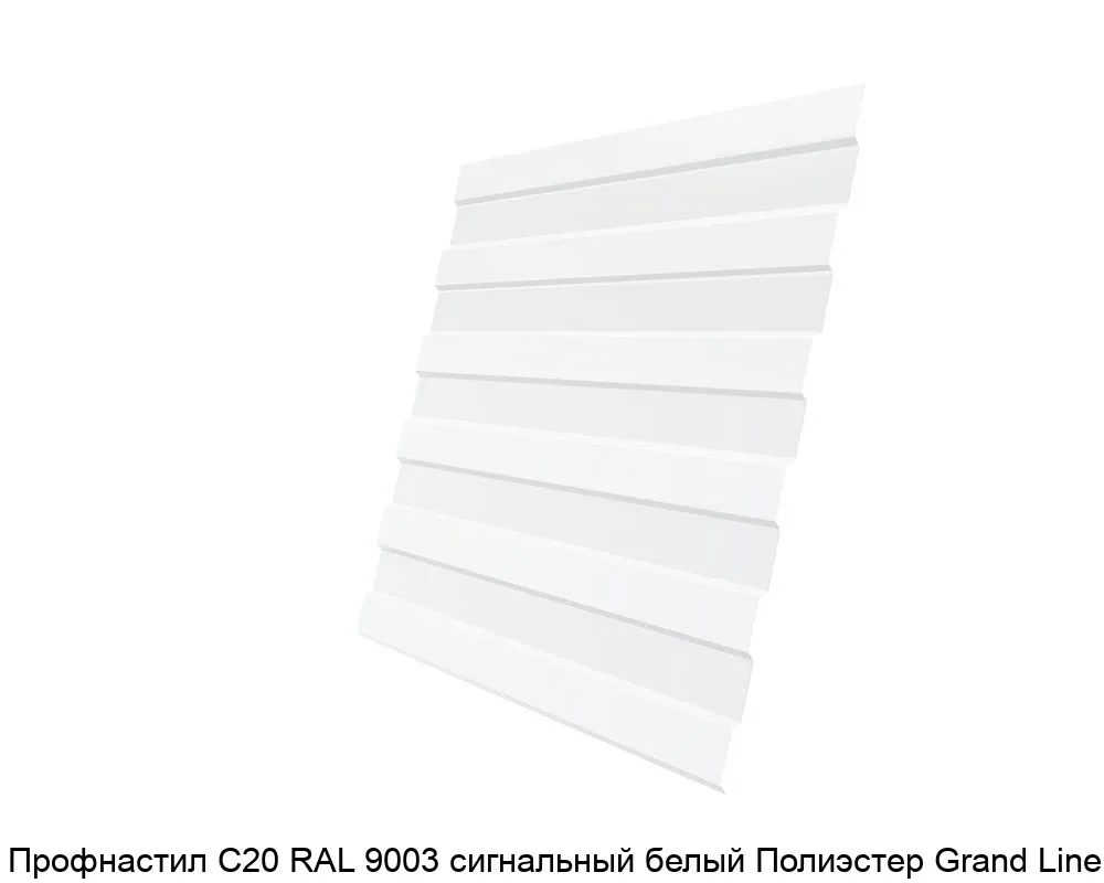 Профнастил С20 RAL 9003 — это стальной лист с полимерным покрытием, который используется в строительстве для облицовки фасадов, устройства кровли, возведения ограждений и других конструкций.