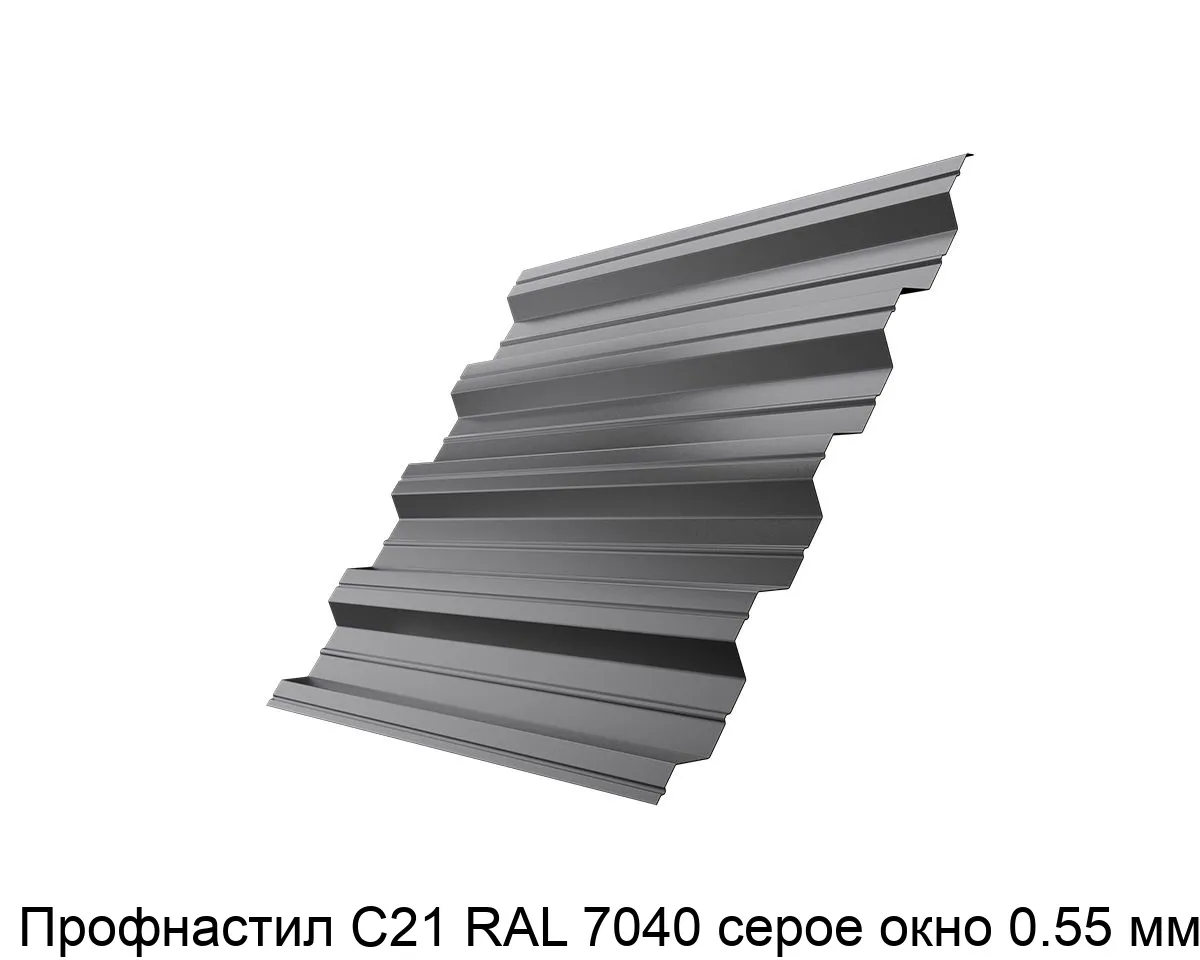 Купить профнастил С21 RAL 7040 серый окно 0.55 мм в Москве вы можете в компании Сортмет. Для этого оформите заказ на сайте или по телефону 8 (495) 123-30-40. У нас на складе постоянно в наличии широкий выбор металлопроката, лучшие цены и оперативная доставка.