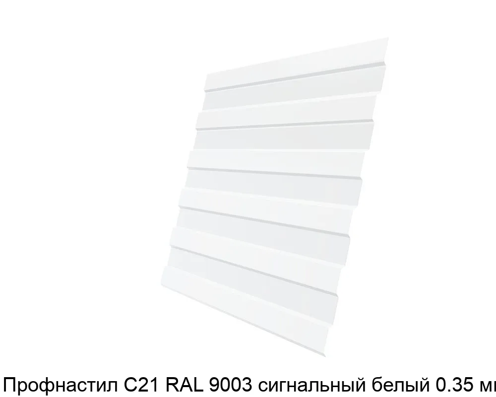 Купить профнастил С21 RAL 9003 сигнальный белый 0.35 мм в Москве вы можете в компании Сортмет. Для этого оформите заказ на сайте или по телефону 8 (495) 123-30-40. На нашем складе всегда в наличии огромный выбор металлопроката, адекватные цены и оперативная доставка.