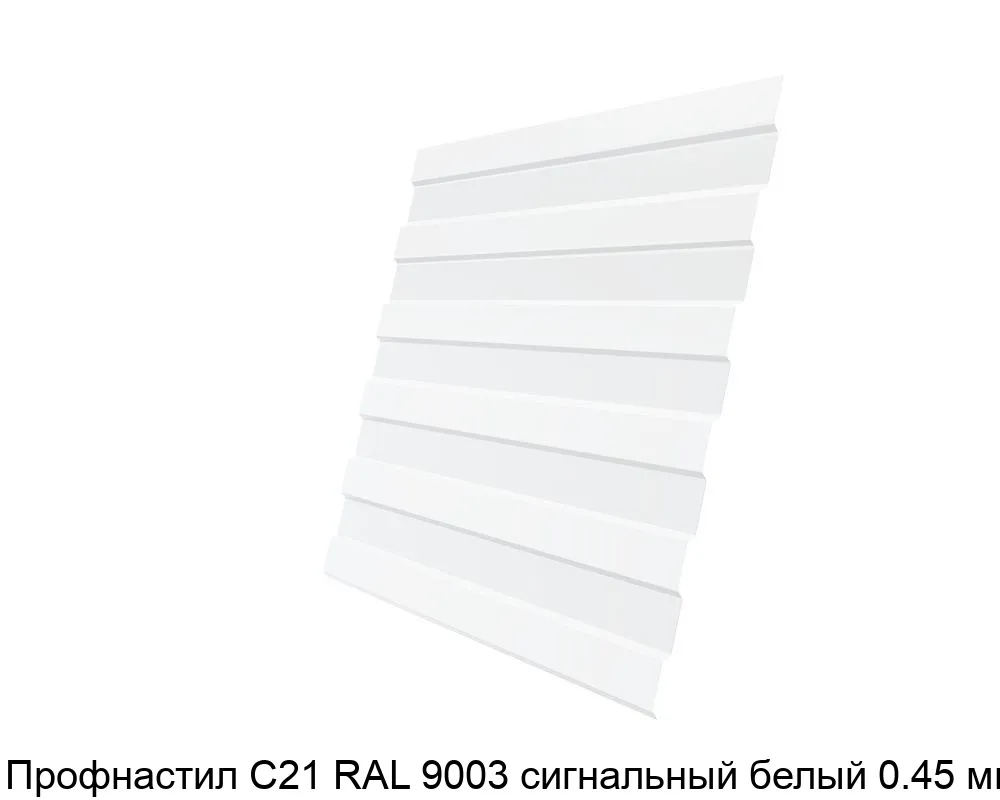 Купить профнастил С21 RAL 9003 сигнальный белый 0.45 мм в Москве вы можете в компании Сортмет. Для этого оформите заказ на сайте или по телефону 8 (495) 123-30-40. У нас на складе всегда в наличии большой ассортимент металлопроката, лучшие цены и быстрая доставка.