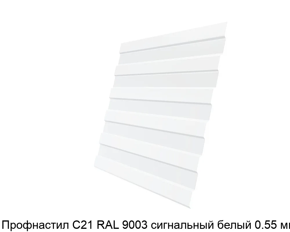 Профнастил С21 RAL 9003 — это стальной лист с полимерным покрытием белого цвета, который применяется в различных сферах благодаря своей универсальности и яркости.