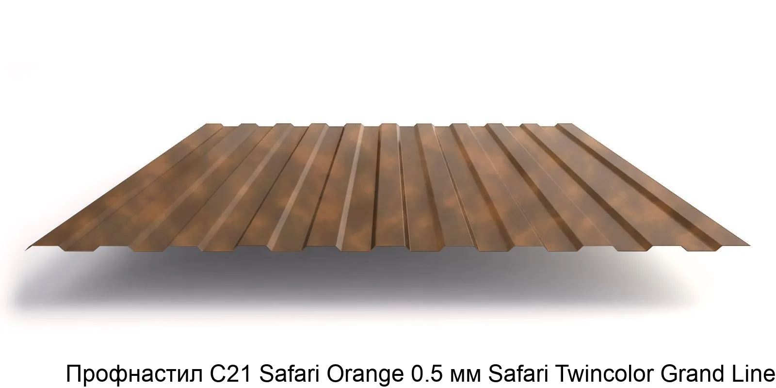 Купить профнастил С21 Safari Orange 0.5 мм Safari Twincolor Grand Line в Москве вы можете в компании Сортмет. Для этого оформите заказ на сайте или по телефону 8 (495) 123-30-40. На нашем складе постоянно в наличии большой ассортимент металлопроката, лучшие цены и своевременная доставка.