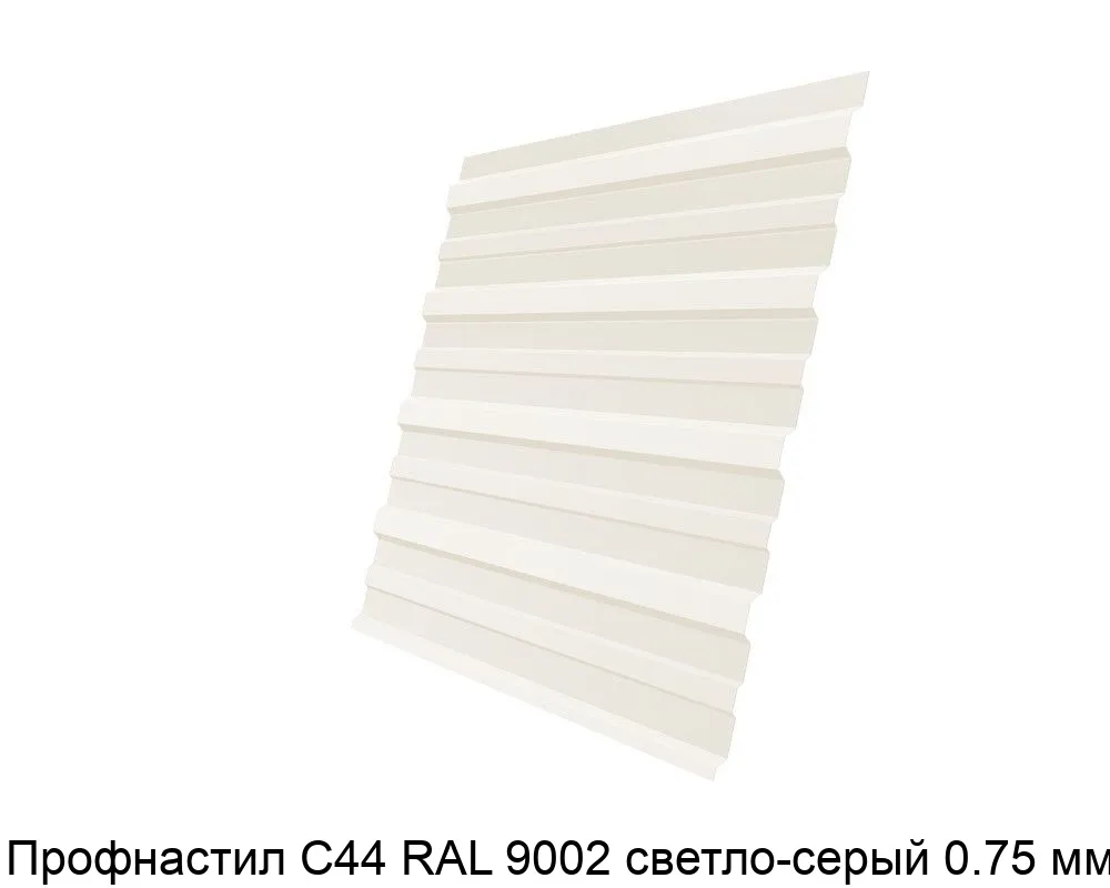 Купить профнастил С44 RAL 9002 светло-серый 0.75 мм в Москве вы можете в компании Сортмет. Для этого оформите заказ на сайте или по телефону 8 (495) 123-30-40. На нашем складе всегда в наличии огромный выбор металлопроката, лучшие цены и своевременная доставка.
