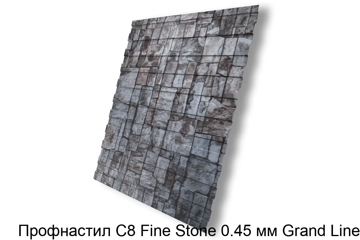 Купить профнастил С8 Fine Stone 0.45 мм Grand Line в Москве вы можете в компании Сортмет. Для этого оформите заказ на сайте или по телефону 8 (495) 123-30-40. На нашем складе постоянно в наличии огромный выбор металлопроката, лучшие цены и быстрая доставка.