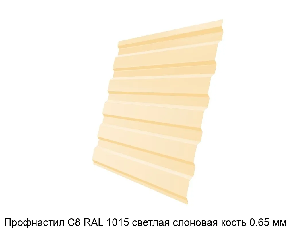 Купить профнастил С8 RAL 1015 светлый слоновая кость 0.65 мм в Москве вы можете в компании Сортмет. Для этого оформите заказ на сайте или по телефону 8 (495) 123-30-40. У нас всегда в наличии огромный ассортимент металлопроката, лучшие цены и своевременная доставка.