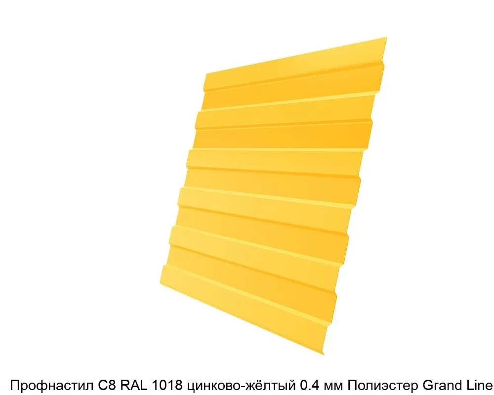 Купить профнастил С8 RAL 1018 цинково-жёлтый 0.4 мм Полиэстер Grand Line в Москве вы можете в компании Сортмет. Для этого оформите заказ на сайте или по телефону 8 (495) 123-30-40. У нас всегда в наличии огромный ассортимент металлопроката, доступные цены и своевременная доставка.