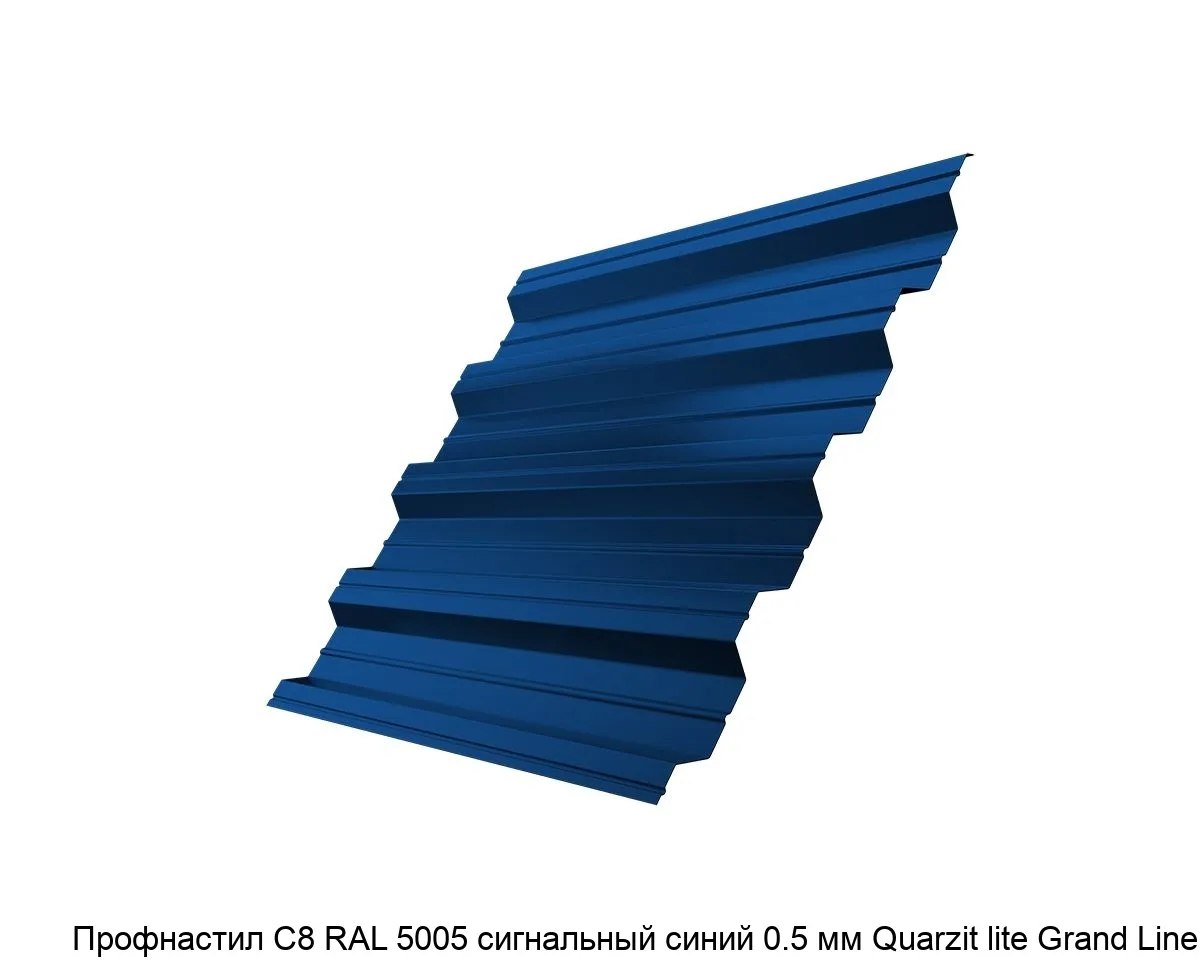 Профнастил С8 RAL 5005 сигнальный синий 0.5 мм Quarzit lite Grand Line изготавливается из оцинкованной стали, которая затем покрывается защитным полимерным слоем. Это обеспечивает долговечность и устойчивость к коррозии.