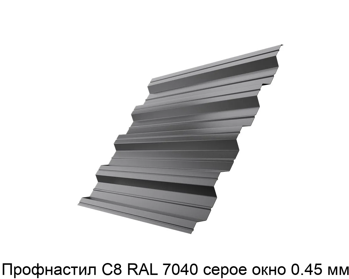 Купить профнастил С8 RAL 7040 серый окно 0.45 мм в Москве вы можете в компании Сортмет. Для этого оформите заказ на сайте или по телефону 8 (495) 123-30-40. На нашем складе всегда в наличии широкий выбор металлопроката, адекватные цены и оперативная доставка.