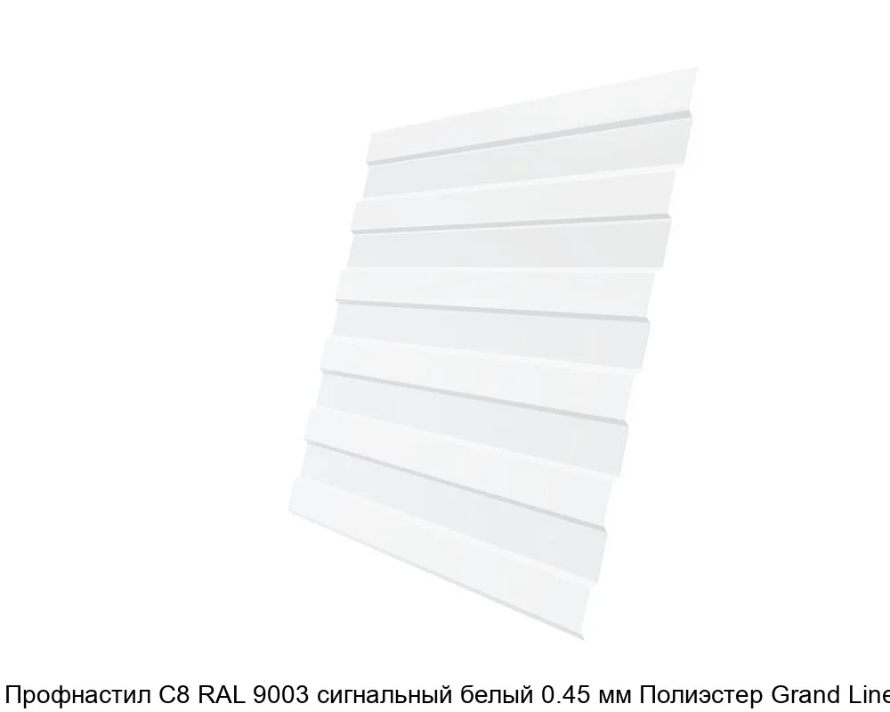 Профнастил С8 RAL 9003 сигнальный белый 0.45 мм Полиэстер Grand Line изготавливается из оцинкованной стали, которая покрывается слоем полиэстера. Это обеспечивает прочность, долговечность и защиту от коррозии.