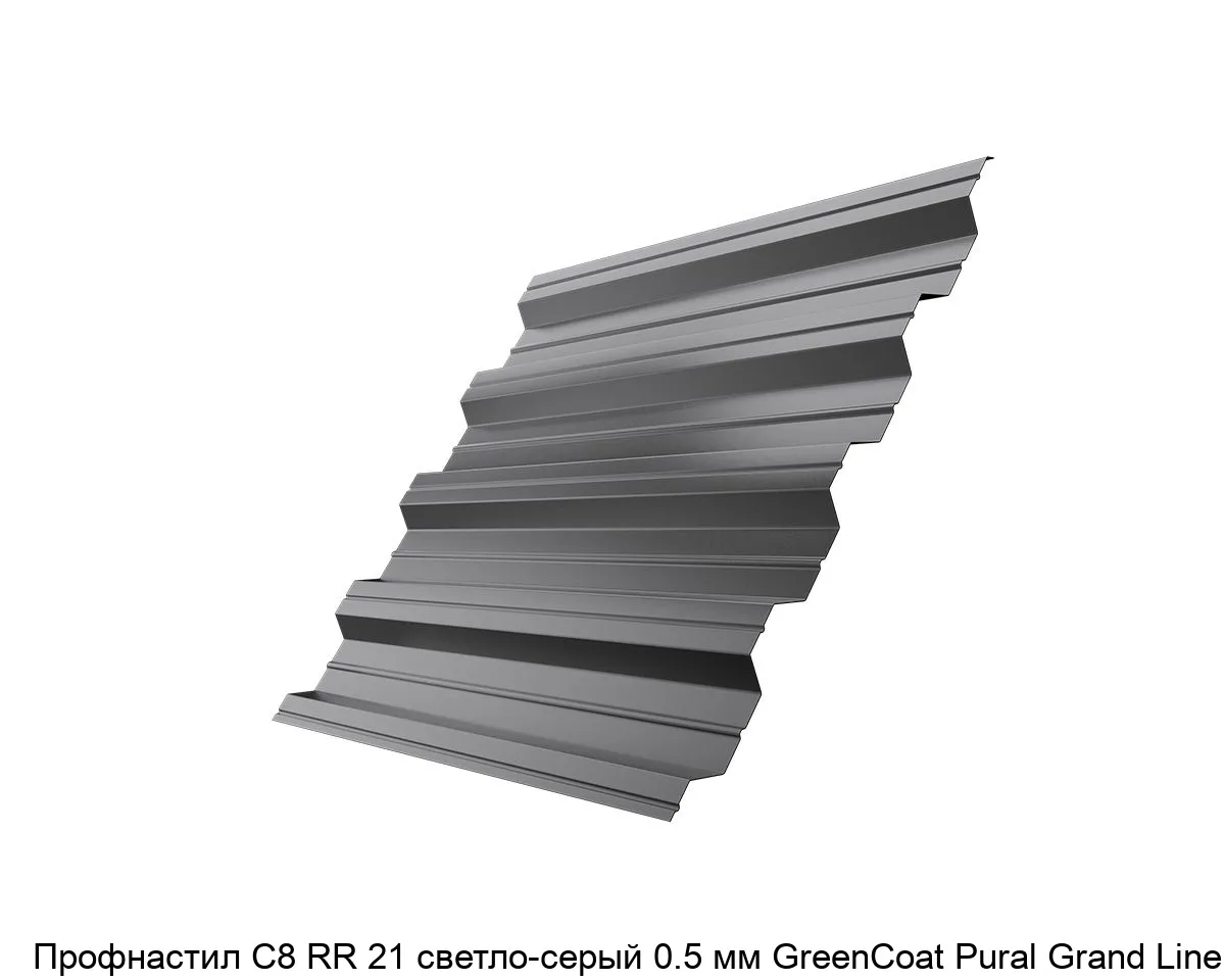 Купить профнастил С8 RR 21 светло-серый 0.5 мм GreenCoat Pural Grand Line в Москве вы можете в компании Сортмет. Для этого оформите заказ на сайте или по телефону 8 (495) 123-30-40. У нас на складе постоянно в наличии большой ассортимент металлопроката, доступные цены и быстрая доставка.