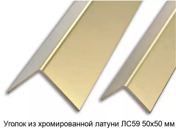 Уголок из латуни ЛС59 изготовлен из сплава меди с содержанием около 59% меди и других элементов, таких как свинец, железо, мышьяк, цинк, олово и др. Хромирование придаёт изделию дополнительную защиту от коррозии и эстетичный внешний вид.