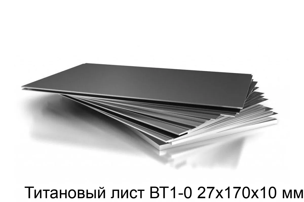 Титановый лист размером 27х170х10 мм изготавливается из сплава ВТ1-0, который содержит не более 0,3% примесей. Этот материал обладает высокой прочностью, лёгкостью и устойчивостью к коррозии.