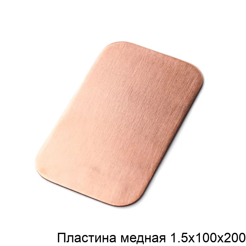 Медная пластина размером 1.5х100х200 изготавливается из меди — это пластичный металл красновато-бурого цвета. Применяется в различных отраслях благодаря высокой тепло- и электропроводности, устойчивости к коррозии и механическим воздействиям.