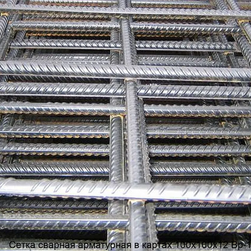 Сетка сварная арматурная в картах 100х100х12 Вр-1 изготавливается из стальной проволоки диаметром 3–12 мм методом контактной точечной сварки. Применяется в строительстве для армирования бетонных конструкций, укрепления фундаментов, перекрытий, дорожных покрытий, а также в производстве железобетонных изделий.