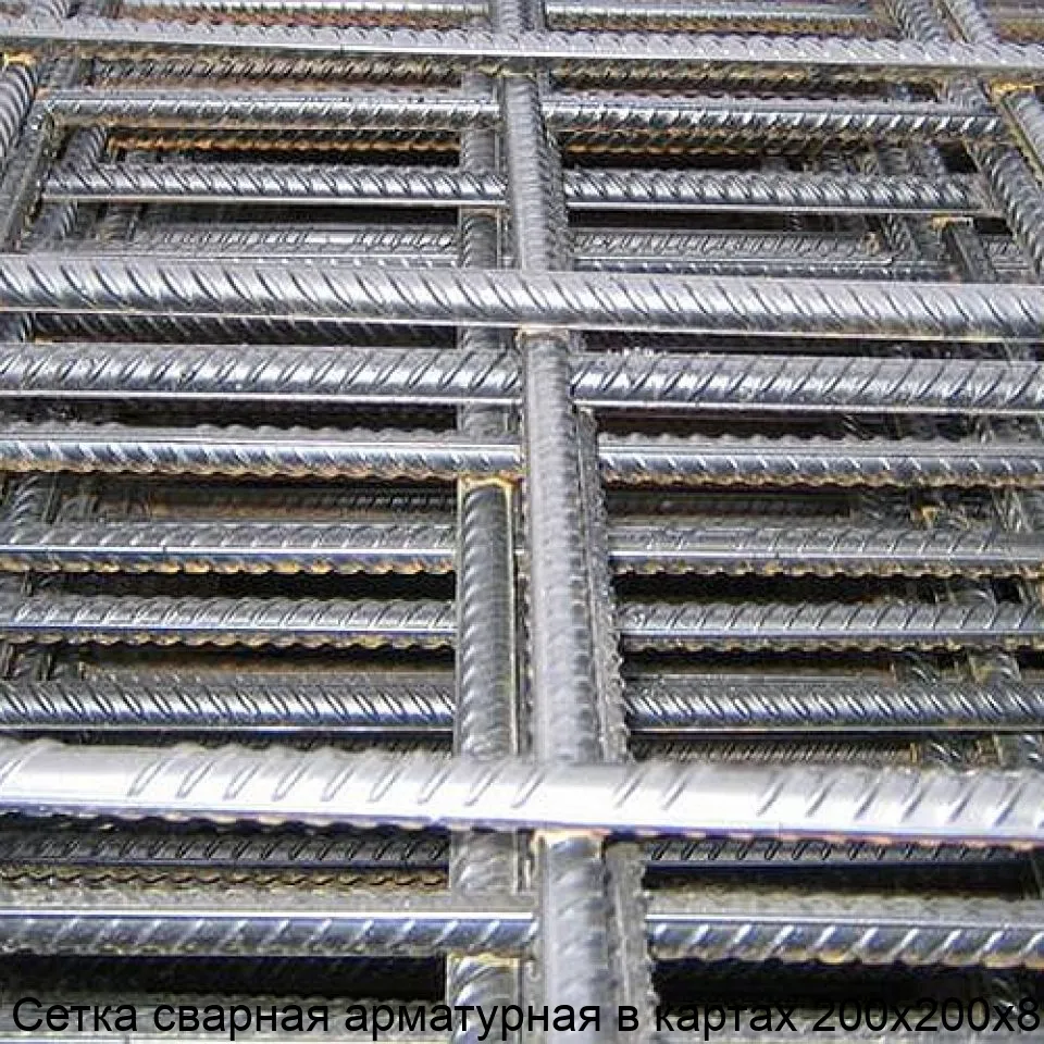 Сетка сварная арматурная в картах 200х200х8 изготавливается из стальной проволоки диаметром 8 мм. Она применяется в строительстве для укрепления бетонных конструкций, создания арматурных каркасов, кладки кирпича и блоков, а также в производстве железобетонных изделий.