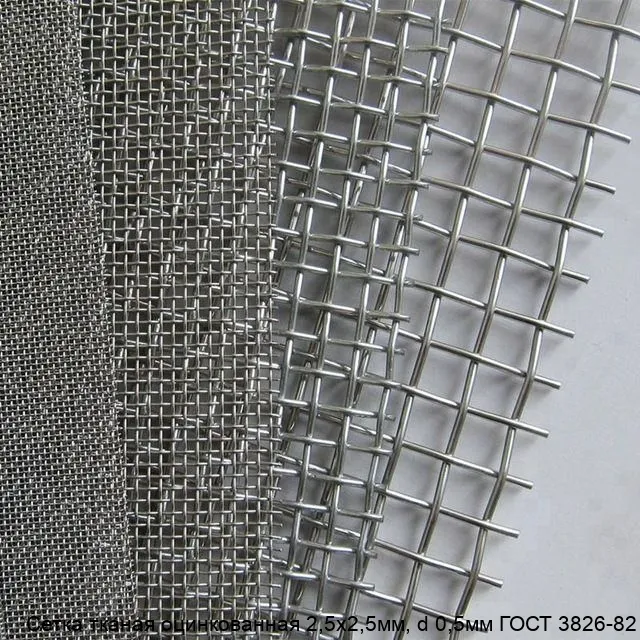 Сетка тканая оцинкованная 2,5х2,5 мм, d 0,5 мм ГОСТ 3826-82 изготавливается из стальной проволоки, покрытой цинком. Это придаёт ей высокую коррозионную стойкость и долговечность.
