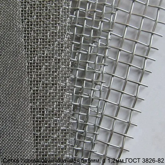 Сетка тканая оцинкованная 5х5 мм, d 1,2 мм ГОСТ 3826-82 изготавливается из стальной проволоки методом переплетения. Оцинкование защищает сетку от коррозии и увеличивает срок её службы.