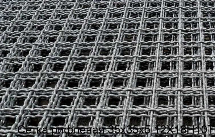 Сетка рифлёная 35х35х5 изготовлена из нержавеющей стали марки 12Х18Н10Т, которая обладает высокой коррозионной стойкостью, прочностью и устойчивостью к воздействию агрессивных сред.