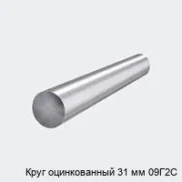 Оцинкованный круг 31 мм из стали 09Г2С изготавливают из качественной стали методом горячей или холодной прокатки с последующим цинковым покрытием. Цинк защищает металл от коррозии и механических повреждений.