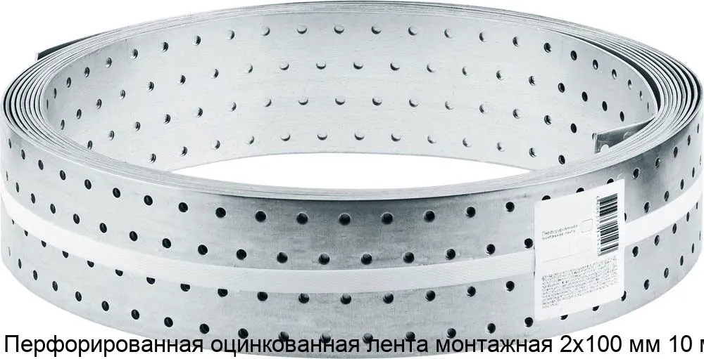 Перфорированная оцинкованная монтажная лента изготовлена из стали, покрытой цинком, что обеспечивает ей защиту от коррозии и увеличивает срок службы. Лента имеет размер 2х100 мм и длину 10 метров.