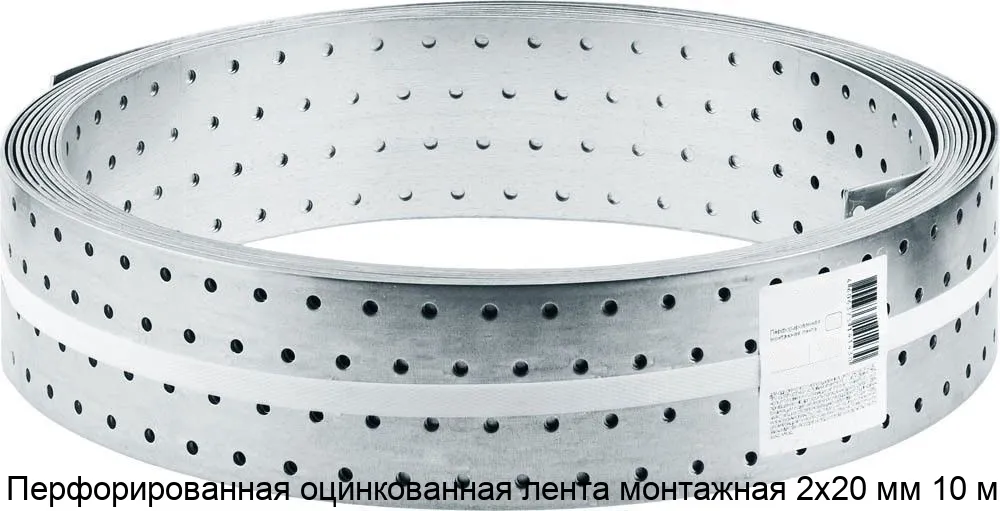 Перфорированная оцинкованная монтажная лента изготавливается из стали, которая покрывается слоем цинка для защиты от коррозии. Лента имеет перфорацию, то есть отверстия, которые облегчают её крепление к поверхности.