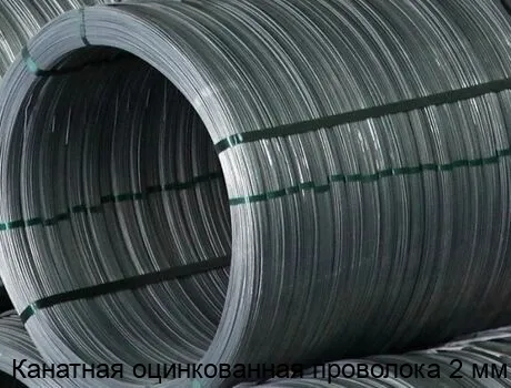 Канатная оцинкованная проволока диаметром 2 мм изготавливается из углеродистой стали путём холодного волочения. Проволоку покрывают слоем цинка, что обеспечивает защиту от коррозии и увеличивает срок службы.
