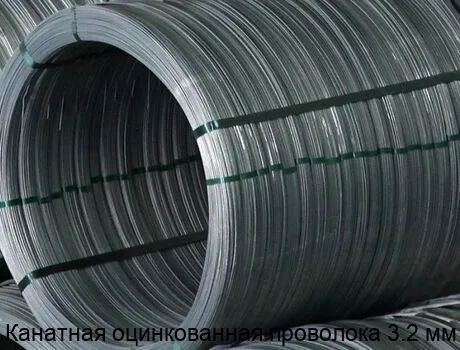 Канатная оцинкованная проволока диаметром 3.2 мм изготавливается из стали с последующим покрытием цинком. Это делает её устойчивой к коррозии и продлевает срок службы.