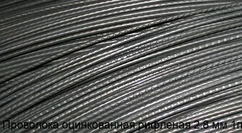 Проволока оцинкованная рифлёная 2.8 мм 1пс изготавливается из стали с последующим цинковым покрытием, которое обеспечивает защиту от коррозии. Это делает её прочной и долговечной.