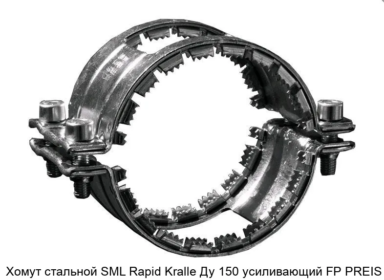 Купить хомут стальной SML Rapid Kralle Ду 150 усиливающий FP PREIS в Москве вы можете в компании Сортмет. Для этого оформите заказ на сайте или по телефону 8 (495) 123-30-40. У нас постоянно в наличии огромный выбор металлопроката, адекватные цены и быстрая доставка.